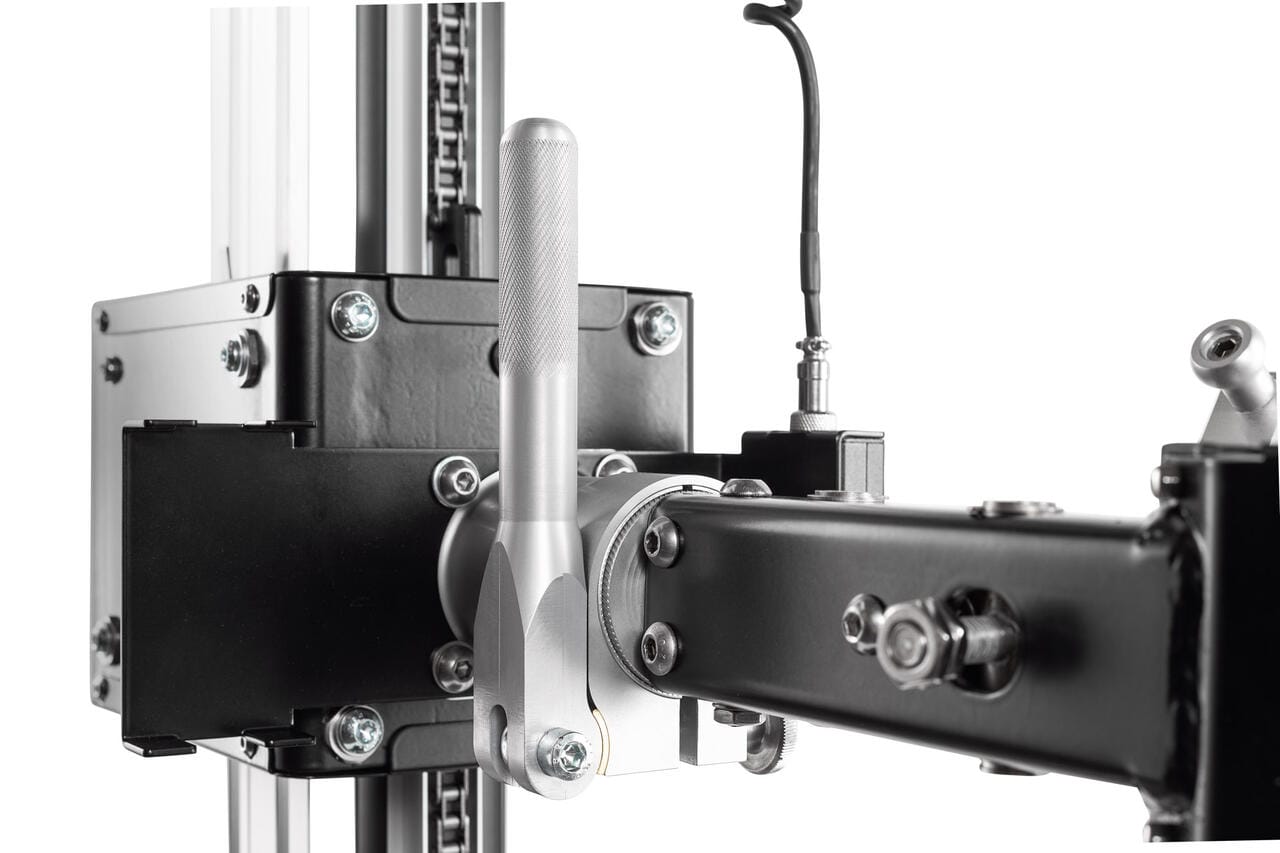 sykler og en intuitiv betjening. Stabilitet oppnås ved hjelp av en ekstrudert aluminiumssøyle og den ergonomiske utformingen sikrer en komfortabel arbeidsopplevelse og reduserer belastningen på mekanikernes rygg og nakke.