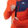 Frontglidelåsen på denne fleecen er veldig dyp for å kunne åpne godt opp i perioder der man bruker mye energi. Ved å legge til åpning fra bunn av glidelås kan man nå fritt ventilere store deler av mage og bryst uten å eksponere nakke og hetteløsning.