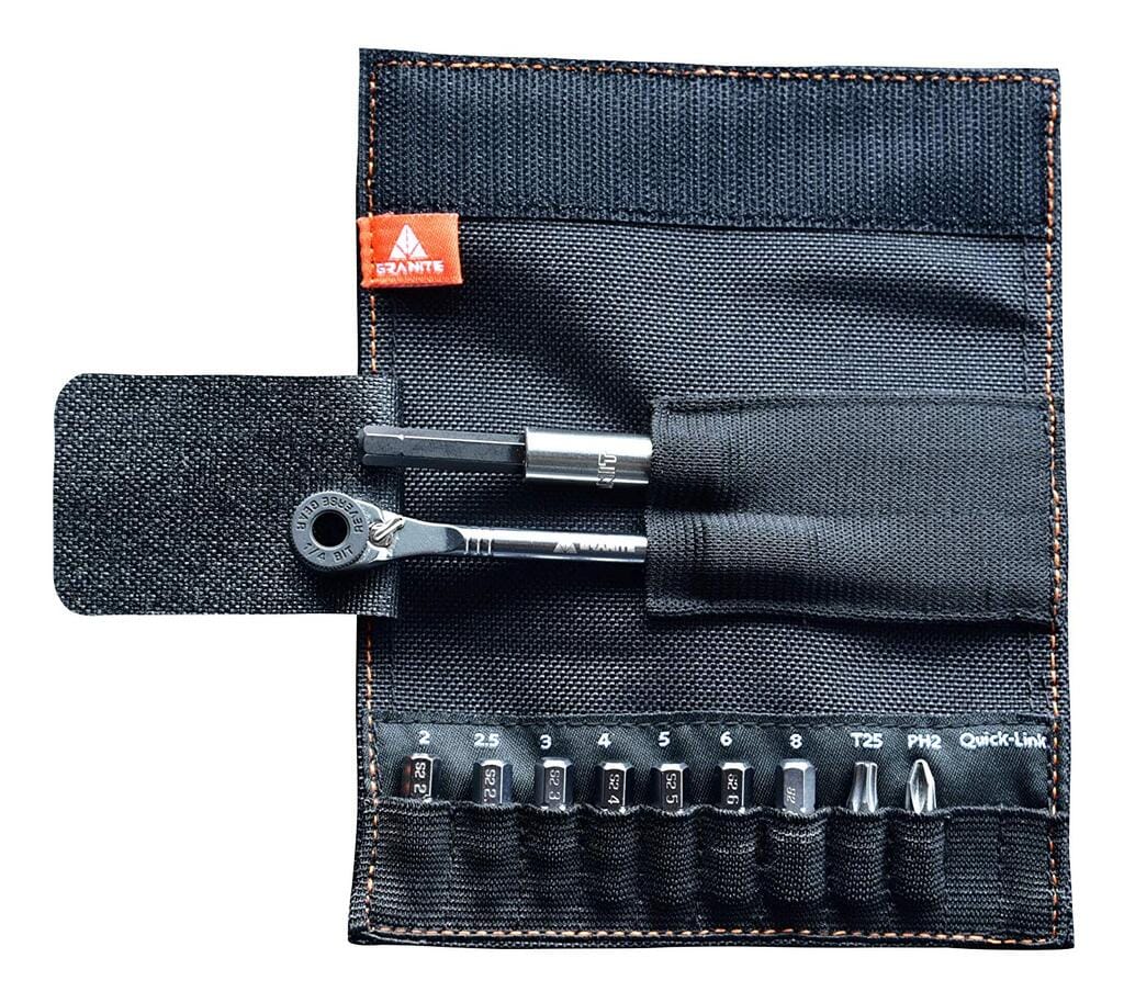 ROCKnROLL kommer i en veske i ekstra kraftig cordura med en ekstra stropp for å passe sammen med rammestroppen Rockband. Settet kommer med kraftig skralle og bits.