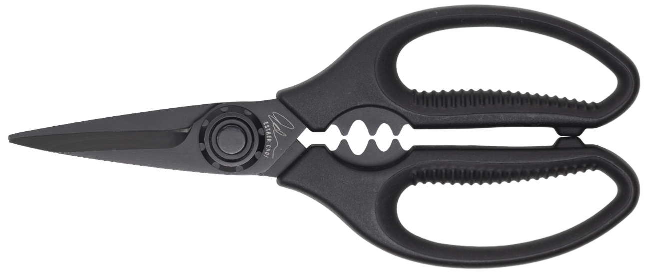 Si hei til din nye favoritt på kjøkkenet: Messermeister Push Button Take-Apart 18 cm presisjonssaks, designet i samarbeid med kjøkkensjef Esther Choi. Denne kraftige saksen er laget av 4 mm høykvalitets karbonstål og belagt med elegant svart titan for slitestyrke, flekkmotstand og stilig utseende. Den patenterte kulelagerdrevne dreieaksen sørger for silkemyke klipp og holder bladene perfekt justert – uten skruer, uten glidning, uten stress. Med et praktisk trykknappsystem for enkel rengjøring, samt innebygde verktøy som benhakk, mikro-tagget skjærekant, urtestripper, nøtteknekker og utskjæringskniv, takler denne saksen alle oppgaver med presisjon. De myke, dobbeltstøpte håndtakene gir komfort hele dagen. Smart, skarp og virkelig revolusjonerende.